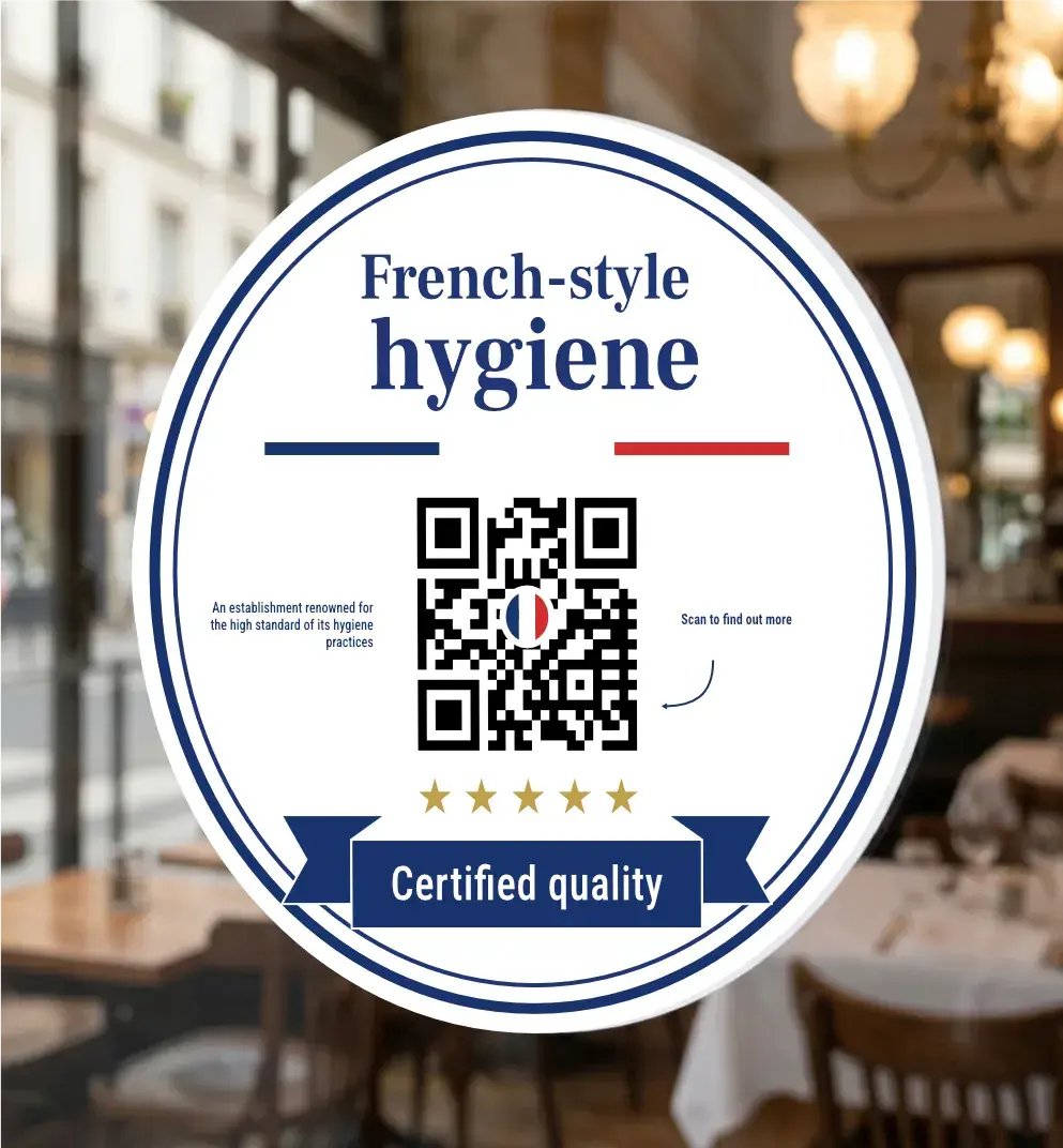 Les établissements répondant à tous les critères reçoivent la certification "Hygiène à la française". Plaque autocollante avec QR code et certificat numérique vous sont remis.